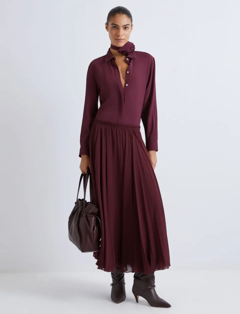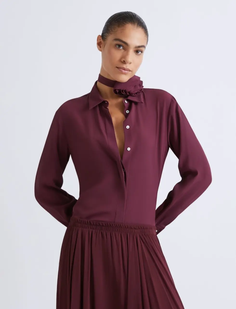 The fluidly elegant crepe de chine fabric transforms this shirt into an