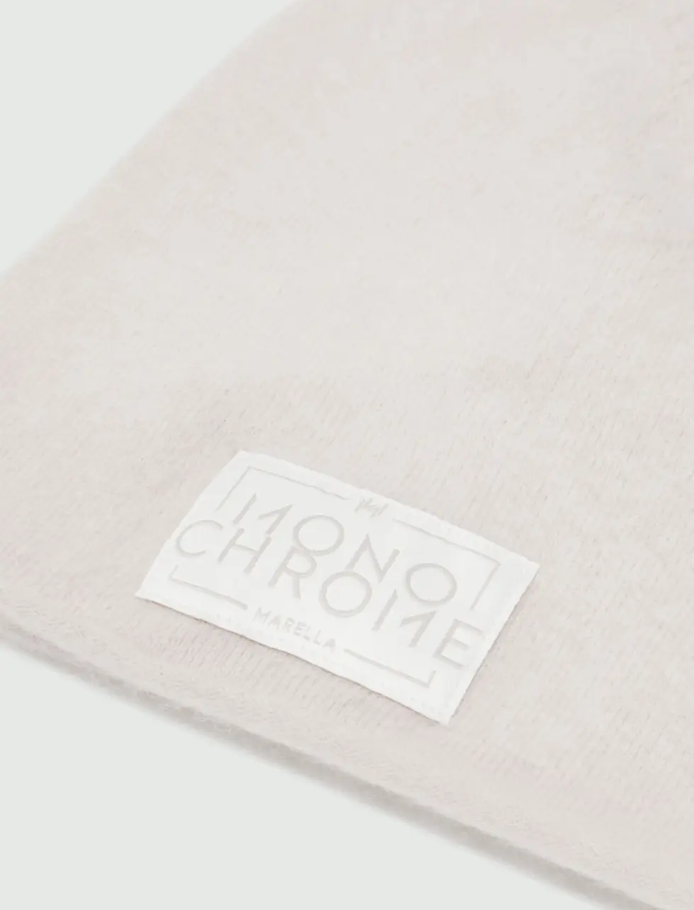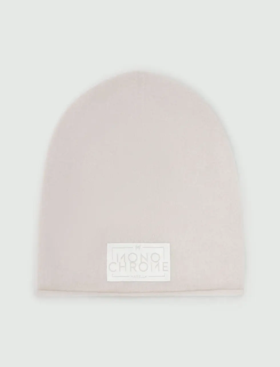 This soft and thin new cashmere-blend beanie hat is decorated with a large branded label.