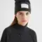 This soft and thin new cashmere-blend beanie hat is decorated with a large branded label.