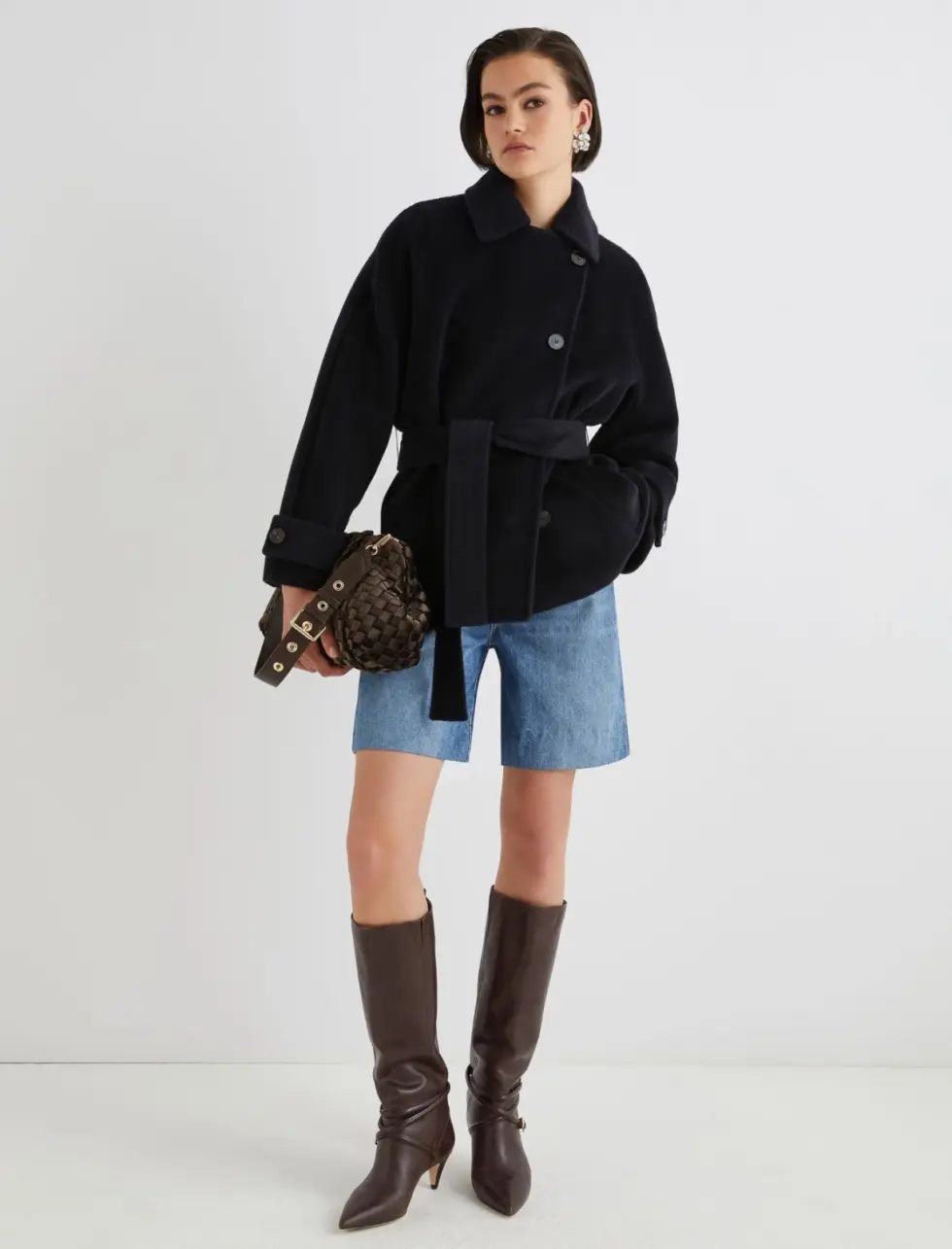 look. Try it with shorts and boots for an ultra-stylish winter.