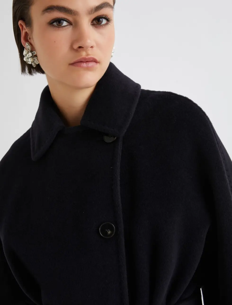 Belted pure wool heavy jacket – NAVY