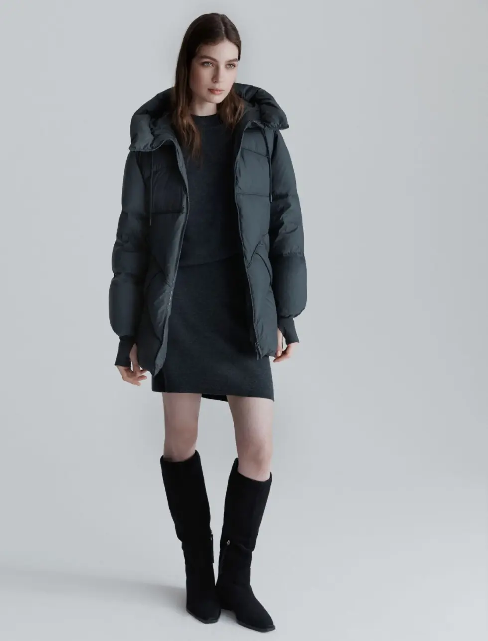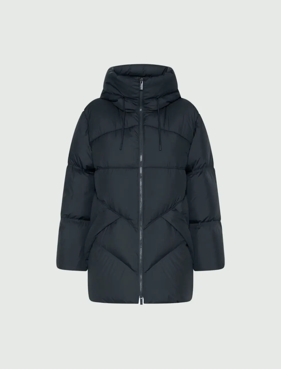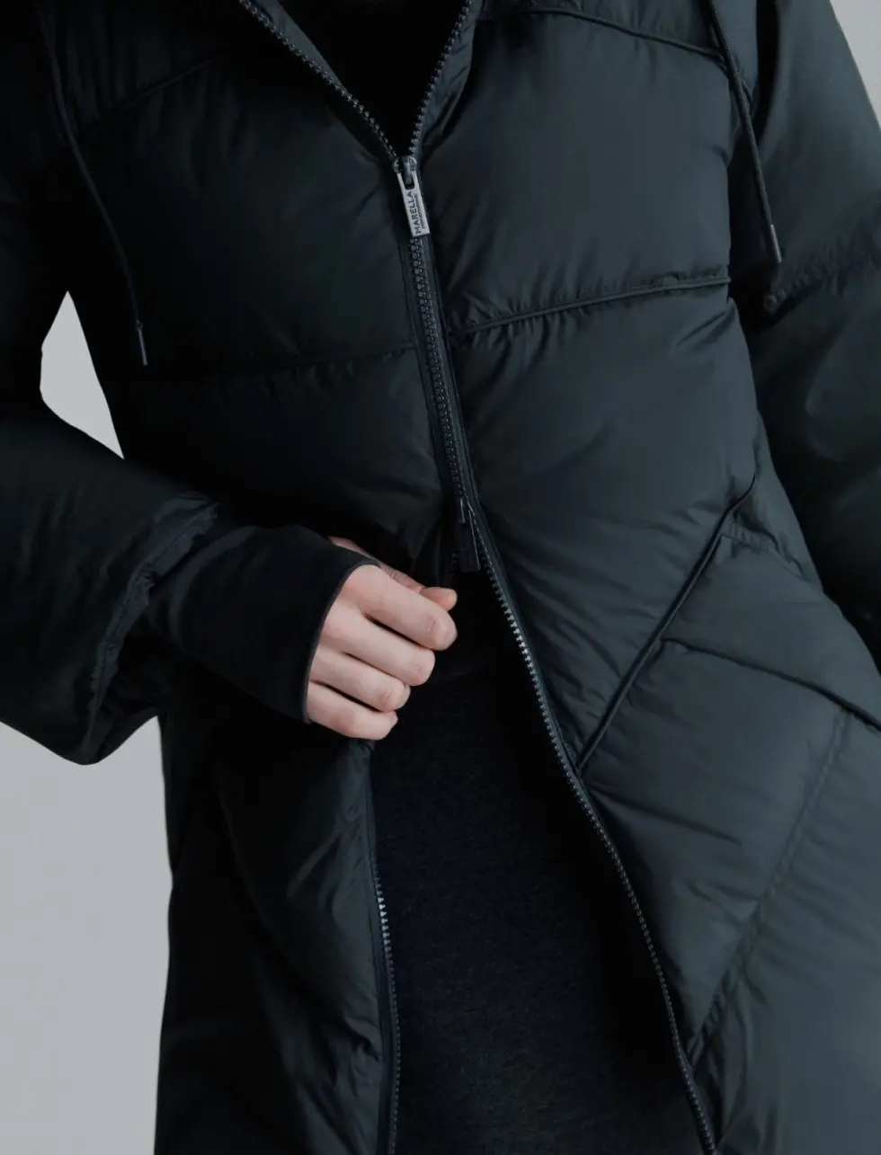 With its flared fit, this waterproof down jacket is ideal for the cold season. The arm-warmer cuffs
