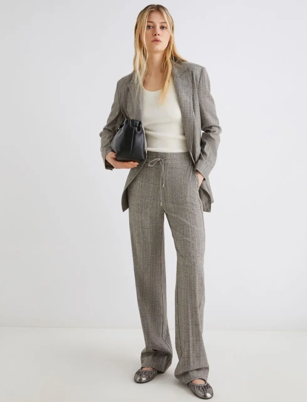 The ultra-comfortable model can be paired with the matching blazer and a stretch vest top for a city