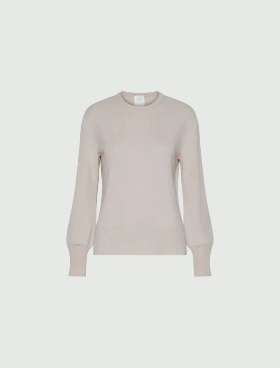 used to create a clean-cut sweater, complete with small side slits and slip-stitch detail for added refinement.