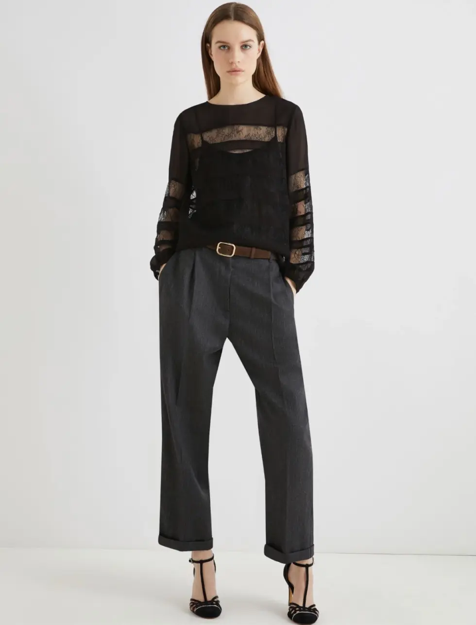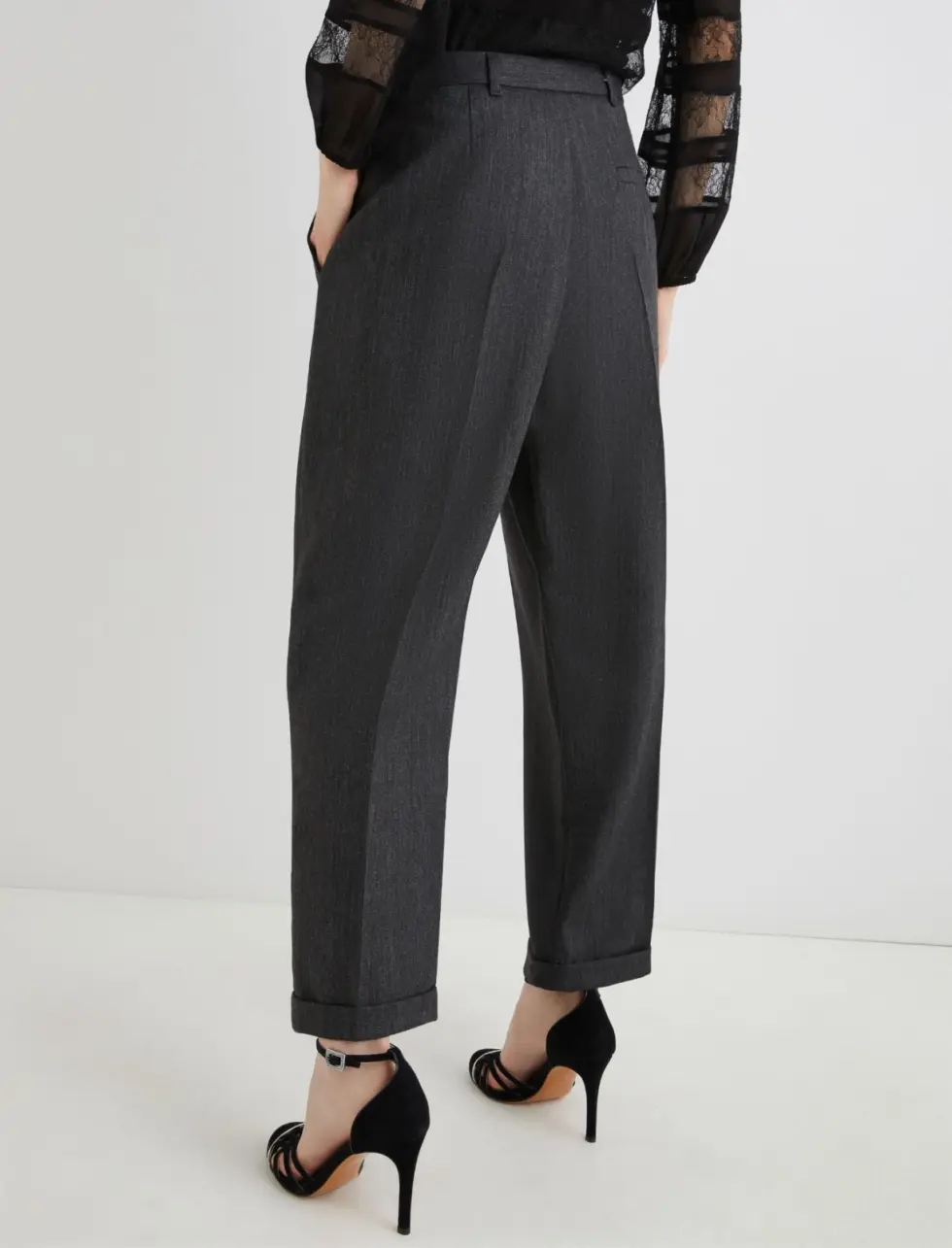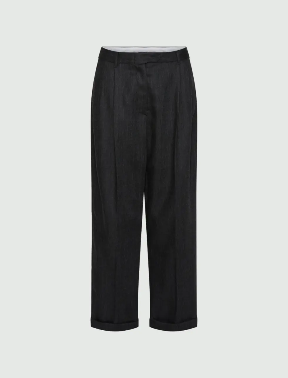 • Pressed pleat detail and turned-up leg hems