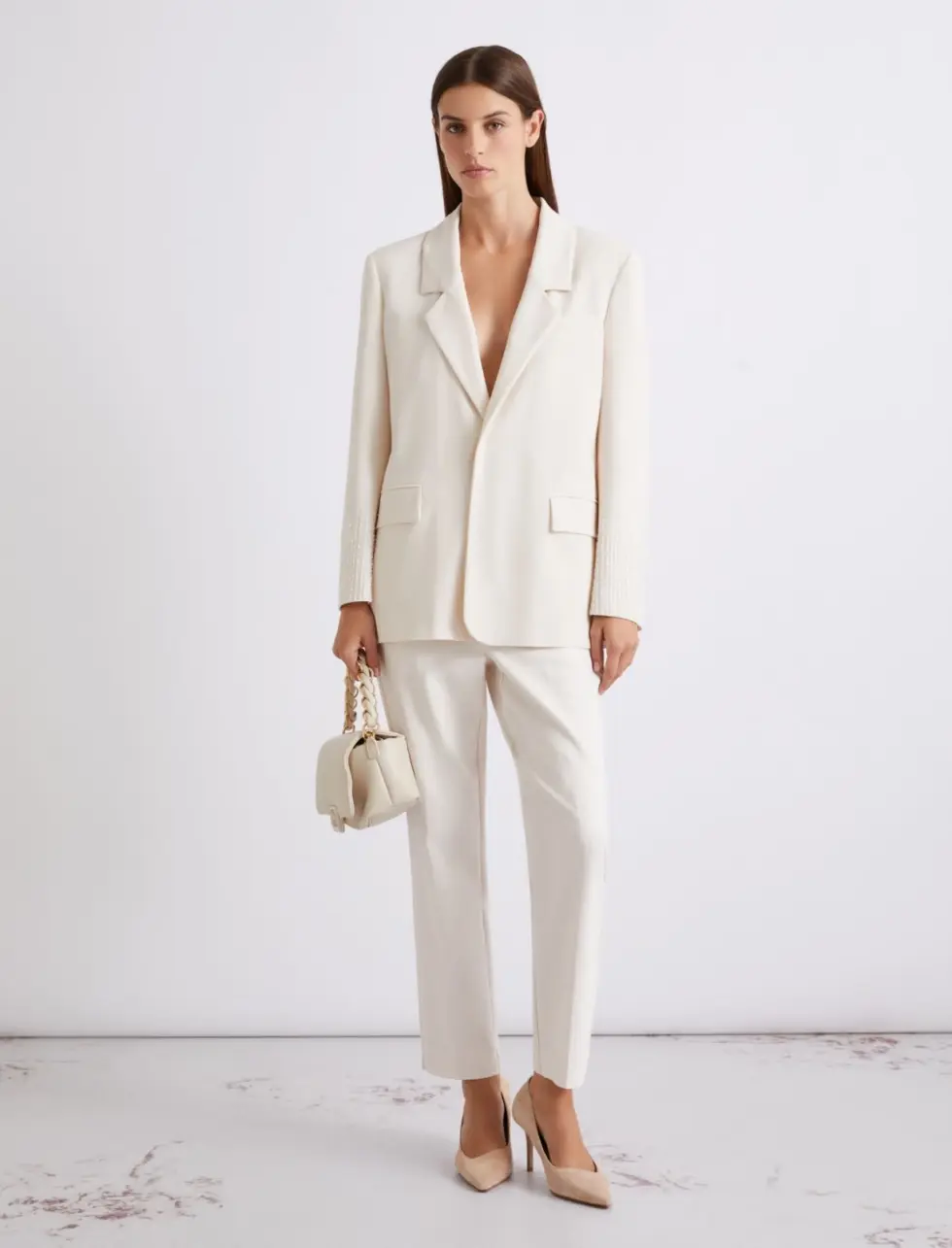- Slightly tapered hem with ankle slits