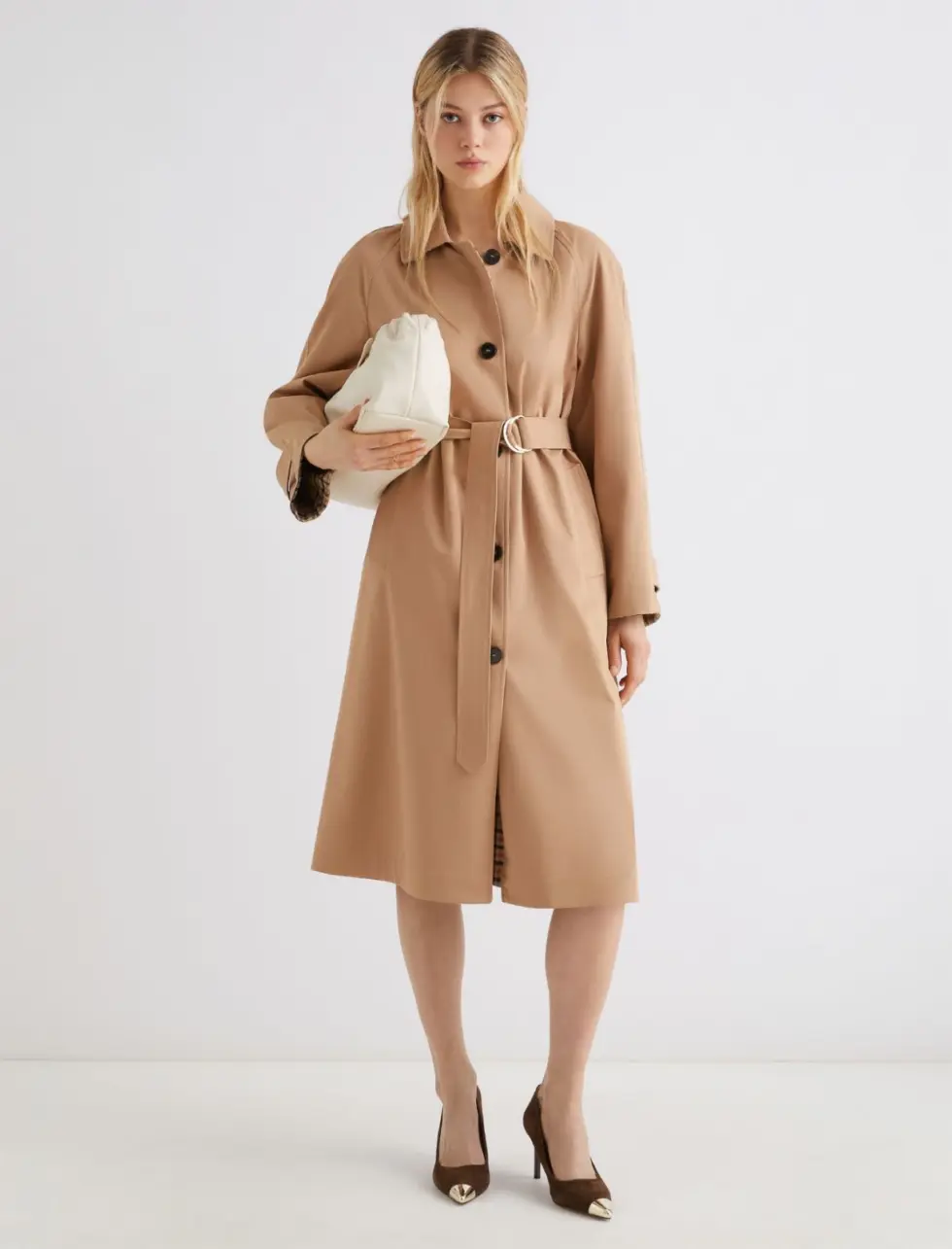 Stretch gabardine trench coat – CAMEL