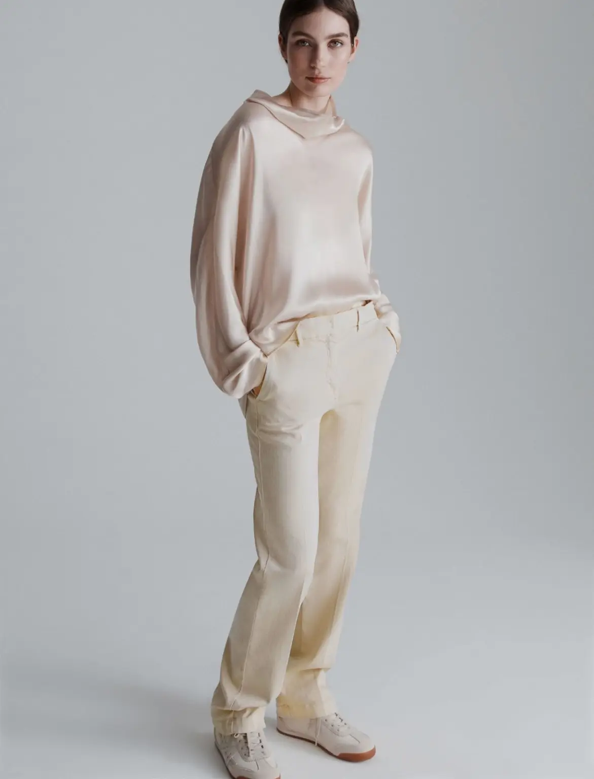 straight-fit twill trousers. Effortlessly tailored and figure-grazing.