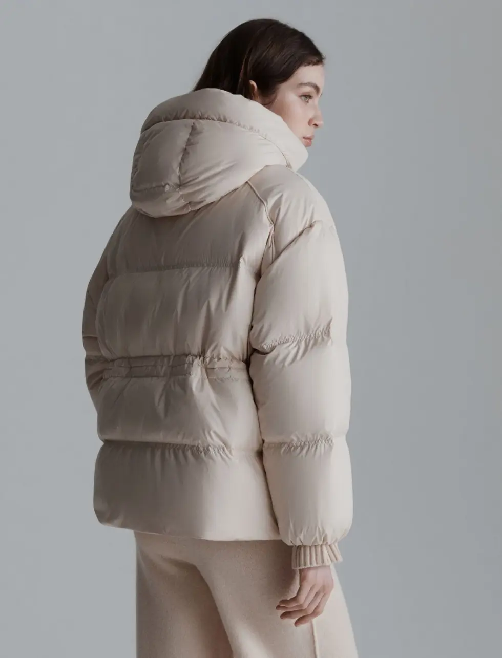 A timeless downproof down jacket with a lined interior and hood detail, to stylishly brave even the